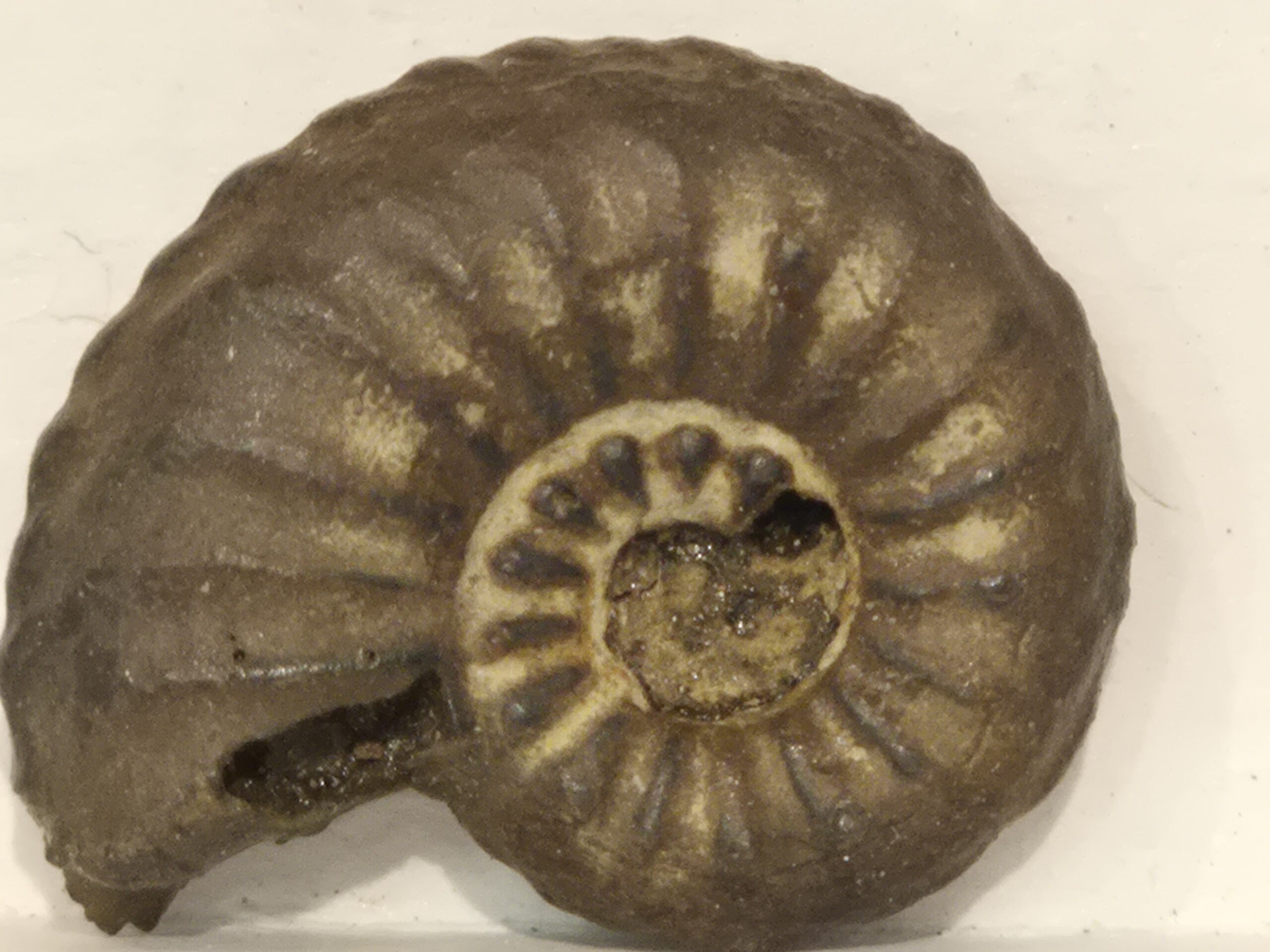 Amaltheus Aveyron. Les ammonites sont un type de mollusque marin préhistorique. Elles ont vécu pendant une vaste période de plus de 300 millions d’années. Leur existence part de la période dévonienne à la fin du crétacé. Elles ont disparu en même temps que les dinosaures, il y a 65 millions d’années. Denos jours leur histoire se retrouve gravée sur toute la terre sous formes de fossiles. Au cours de leur existence, les ammonites se sont transformées en milliers d’espèces, s’adaptant aux différents environnements marins, des plateaux peu profonds jusqu’aux profondes abysses océaniques. Les ammonites , ou Ammonoidea, sont une sous-classe éteinte des mollusques céphalopodes(famille des calamars). Elles apparaissent dans le registre fossile durant le Dévonien et disparaissent peu après la crise Crétacé-Paléogène. Elles se caractérisaient par une coquille  plus ou moins enroulée dont  la dernière loge uniquement était occupée par l’animal. Les autres loges servent à contrôler sa flottaison; le siphon qui les relie est en position externe, le long de la paroi (axial chez les nautiles). Leurs coquilles fossiles sont d’excellents marqueurs chronologiques. Leur taille va de quelques millimètres à plus de 2 mètres de diamètre. Durant le  Callovien, les faunes d’ammonites se renouvellent de façon importante et l’on observe en Charentes la diversification de certains genres et la succession de nombreuses lignées. Cette proliférence est particulièrement observable dans la région de Ruffec en charentes et le département des deux sèvres. Son plus proche descendant serait le  nautilus, le poulpe, le calmar, et la seiche. Leur nom provient de leur forme en spirale qui évoque les cornes de béliers. Pline l’Ancien les appelait “les cornes d’ammon”, faisant référence au dieu égyptien Amon que l’on représentait avec des cornes de bêlier.