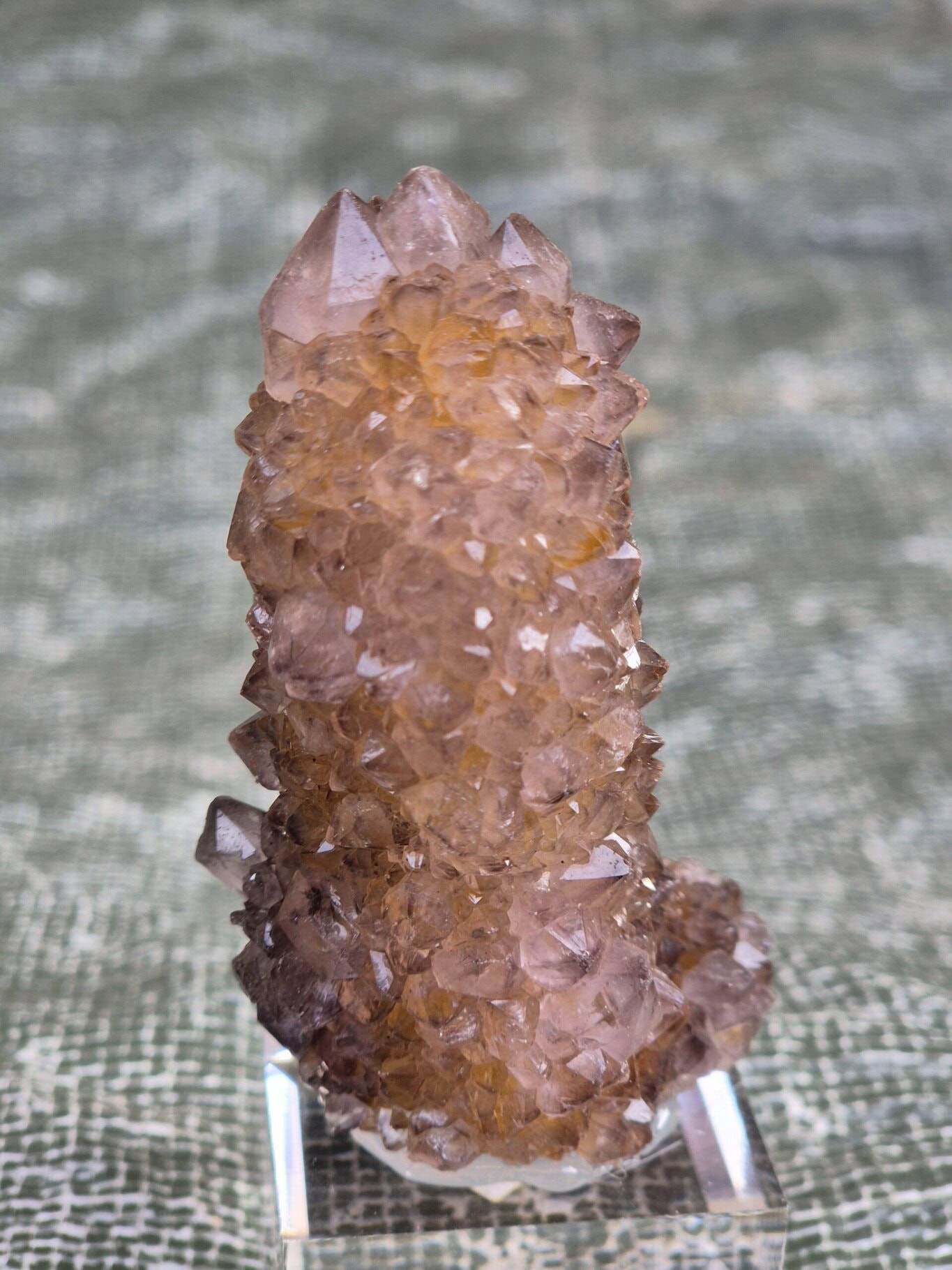 Améthyste cactus hématoide. Pointe cristalisée avec deuxième génération de cristaux formant un ensemble caractéristique. Afrique du Sud.
