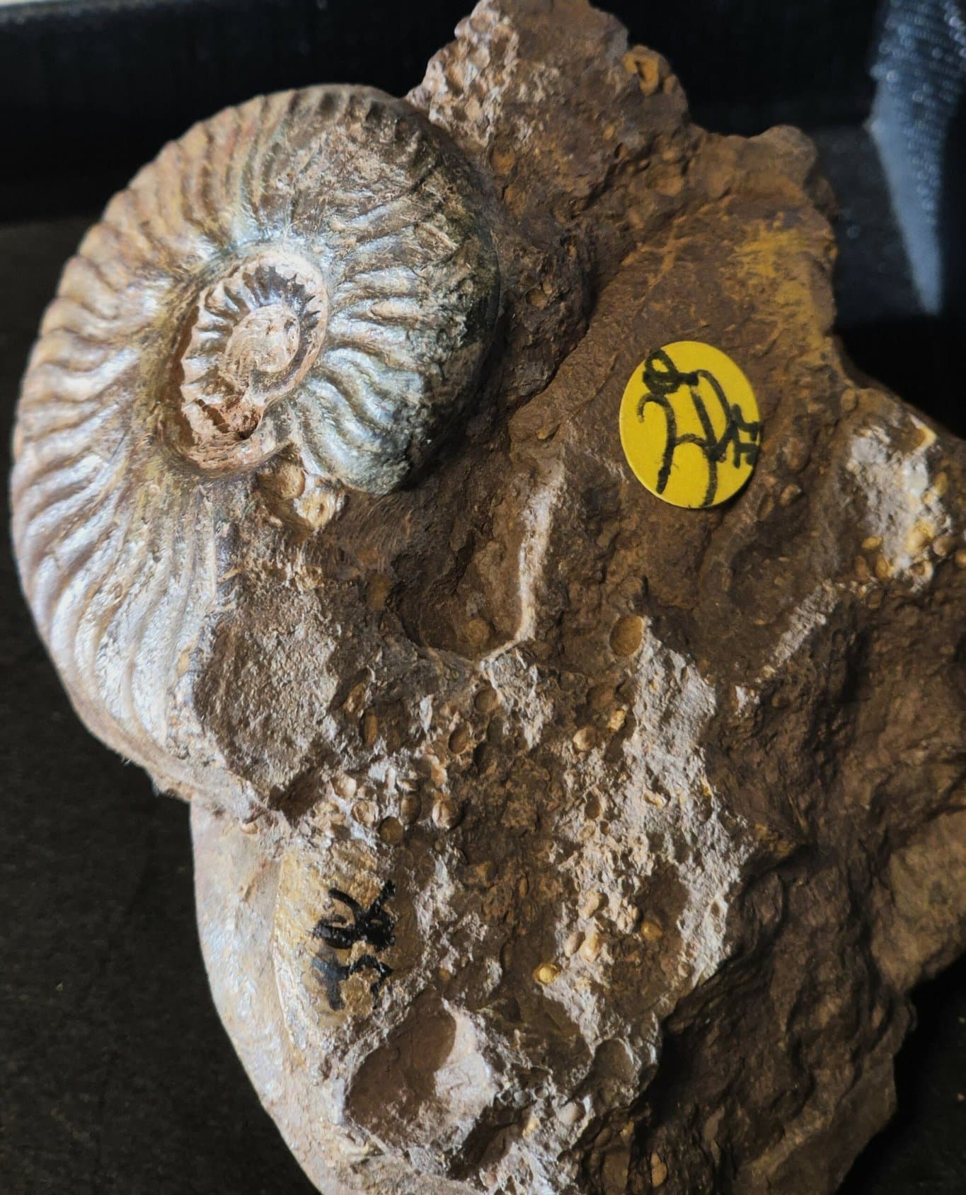 Augia metallaria Aalénien. Les ammonites de cette zone sont de couleur rouille, ocre dû à la présence d’oxydes de fer. La Verpilliére, France.(bloc de 2 spécimens).