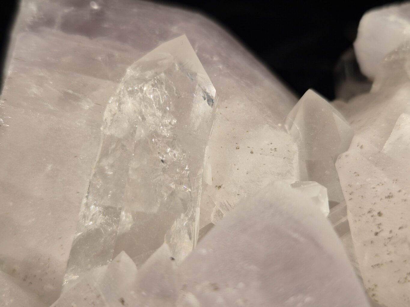 Calcite et Quartz cristallière Maronne. Les carrières de La Mure (notamment le lieu-dit Maronne) ont été exploitées pour le calcaire sédimentaire, mais ces travaux ont révélé des géodes et des fissures spectaculaires remplies de cristaux. Les spécimens de Calcite de Maronne sont reconnus pour leur pureté, leur cristallisation et leurs associations minérales. La Calcite est un minéral commun, mais celle de Maronne se distingue par plusieurs aspects: les cristaux de Calcite de Maronne adoptent principalement des formes prismatiques et scalénoédriques. C’est la forme la plus recherchée. Ce sont des cristaux pointus, souvent allongés, dits en “dents de chien”. Plus rarement, on trouve des rhomboèdres ou des macles complexes.