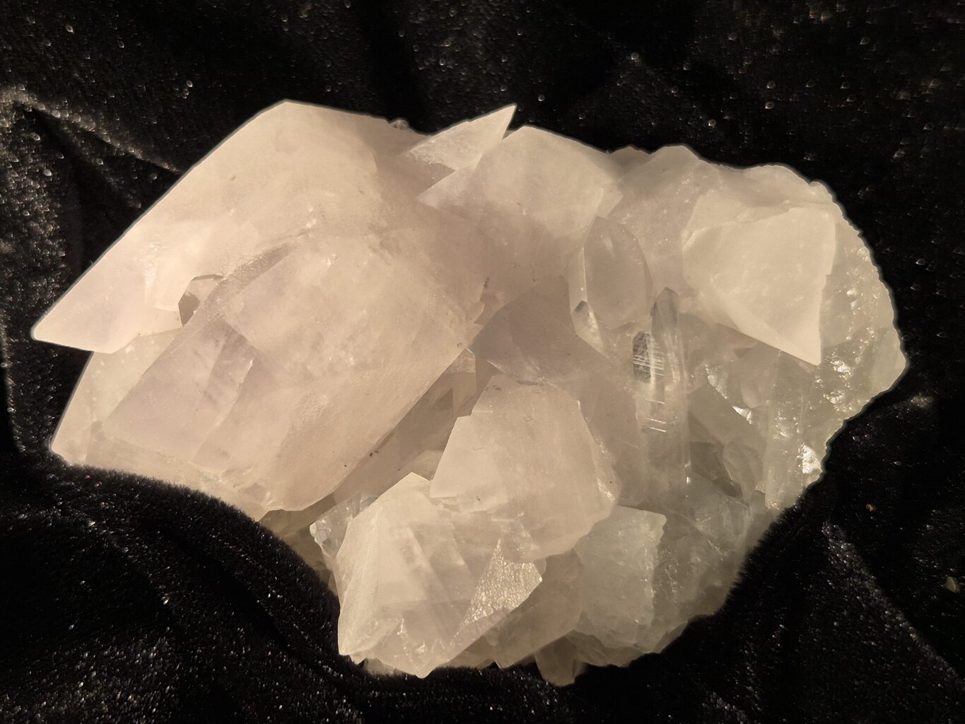 Calcite Quartz Font Poulain Isère. Les carrières de La Mure (notamment le lieu-dit Maronne) ont été exploitées pour le calcaire sédimentaire, mais ces travaux ont révélé des géodes et des fissures spectaculaires remplies de cristaux. Les spécimens de Calcite de Maronne sont reconnus pour leur pureté, leur cristallisation et leurs associations minérales. La Calcite est un minéral commun, mais celle de Maronne se distingue par plusieurs aspects: les cristaux de Calcite de Maronne adoptent principalement des formes prismatiques et scalénoèdres. C’est la forme la plus recherchée. Ce sont des cristaux pointus, souvent allongés, dits en “dents de chien”. Plus rarement, on trouve des rhomboèdres ou des macles complexes.