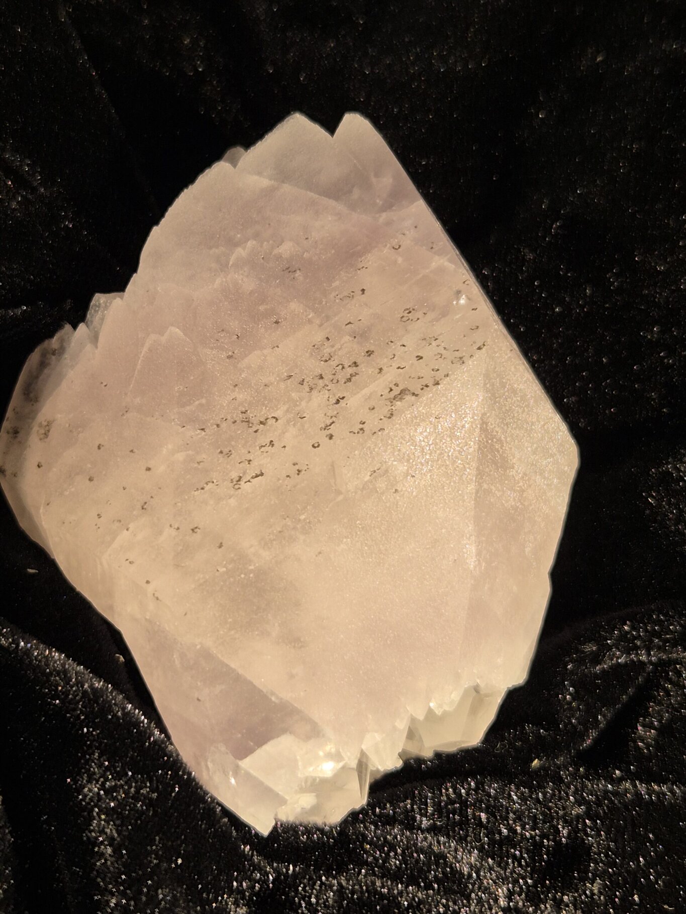Ce qui rend les Calcites de Maronne particulièrement prisées, c’est leur association fréquente avec d’autres minéraux qui viennent contraster ou compléter la couleur rose de la Calcite.