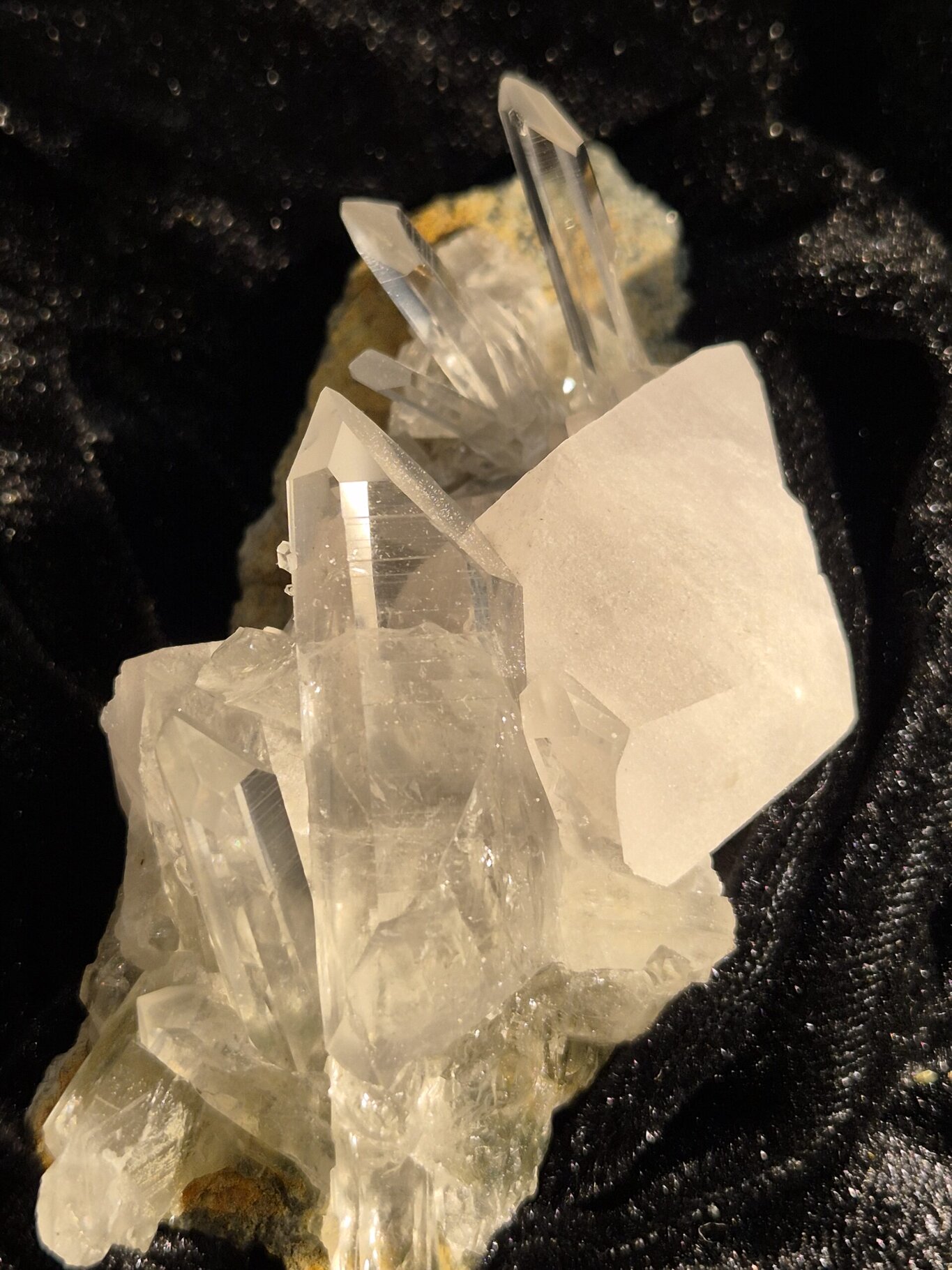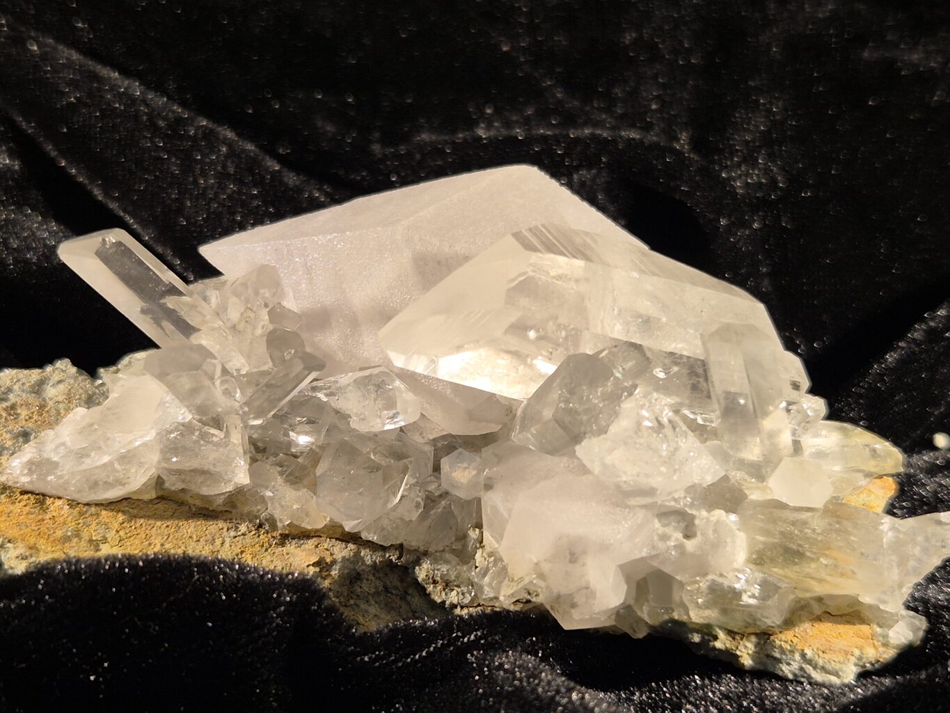 Cristaux de Quartz et Calcite. Les carrières de La Mure (notamment le lieu-dit Maronne) ont été exploitées pour le calcaire sédimentaire, mais ces travaux ont révélé des géodes et des fissures spectaculaires remplies de cristaux. Les spécimens de Calcite de Maronne sont reconnus pour leur pureté, leur cristallisation et leurs associations minérales. La Calcite est un minéral commun, mais celle de Maronne se distingue par plusieurs aspects: les cristaux de Calcite de Maronne adoptent principalement des formes prismatiques et scalénoèdres. C’est la forme la plus recherchée. Ce sont des cristaux pointus, souvent allongés, dits en “dents de chien”. Plus rarement, on trouve des rhomboèdres ou des macles complexes.