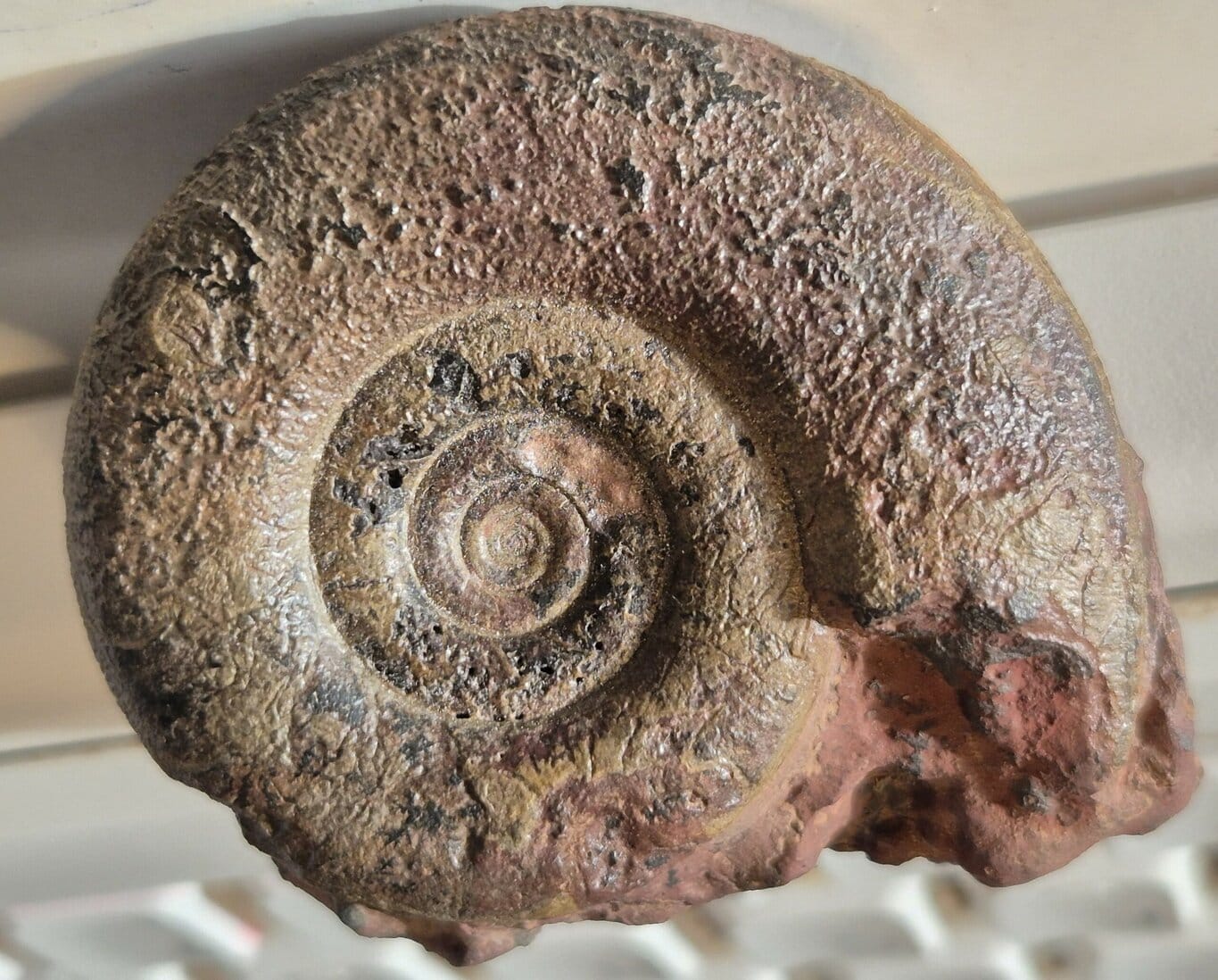 Cymaclymenia Dévonien.  Les fossiles datent de l’étage Faménien, le dernier étage du Dévonien Supérieur (il y a environ 372 à 359 millions d’années).