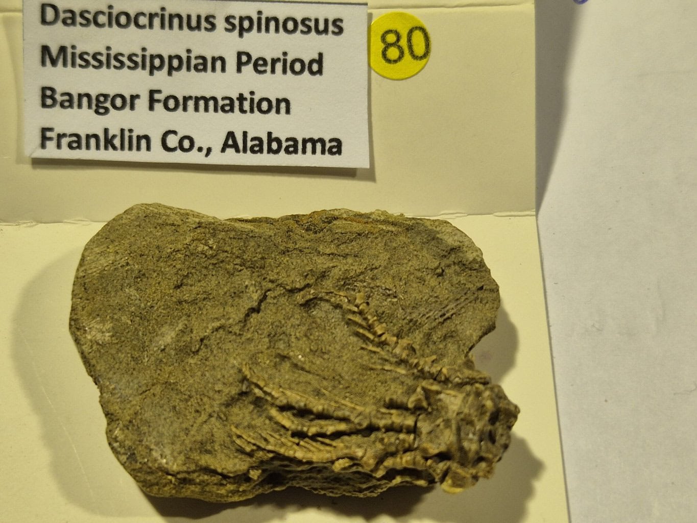 Daciocrinus spinosus. Souvent appelés “lys de mer”, ce sont des échinodermes marins fixés au fond par un pédoncule. Etage Mississipien, Franklin, Alabama.