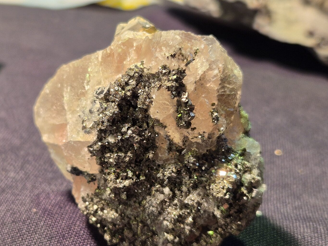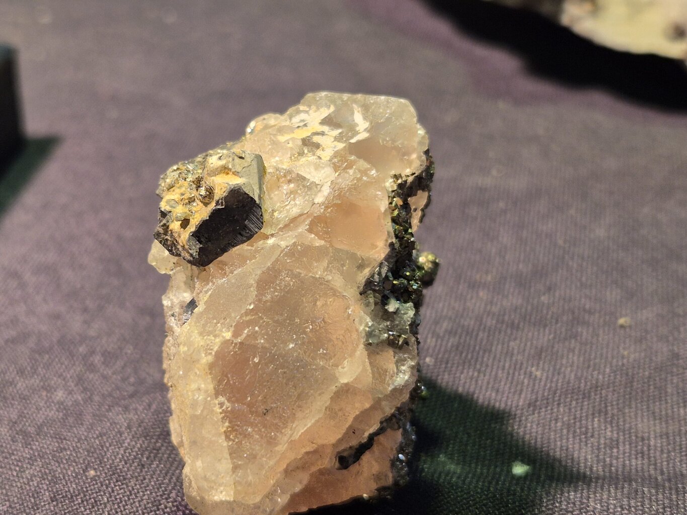 Il est courant de trouver des cristaux de fluorite rose sur une gangue de pyrite, créant un contraste esthétique saisissant.