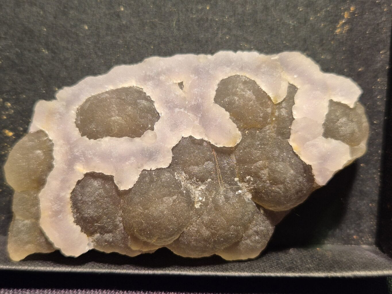 Fluorite verte botryoïdale Xinyang fait partie de ces minéraux commun mais particulièrement appréciés d’un bon nombre de collectionneurs pour ses formes variées et la beauté de ses couleurs. Elle peut être incolore, blanche, violette, bleue, jaune, marron, rose, rouge , noire! En France elle bénéficie encore de l’appellation fluorine. Certains amateurs ne collectionnent que cette espèce minérale et en ont fait leur thème fort. C’est un minéral omniprésent dans de nombreux et différents gites minéralogiques. D’une formule chimique CaF2 il apparait majoritairement dans les filons d’origines hydrothermaux de basse à haute température. Sa forme de base sera le cube pour les basses températures et l’octaèdre pour les hautes températures. Elle forme des cristaux polysynthétiques(trémies ou pyramides aztèques) et quelquefois sous forme sphérique. Dureté 4 et densité 3.1 sa particularité est son éventail de couleurs qui couvre tout le spectre visible! Certaines même sont fortement fluorescents sous la lumière ultra violette!