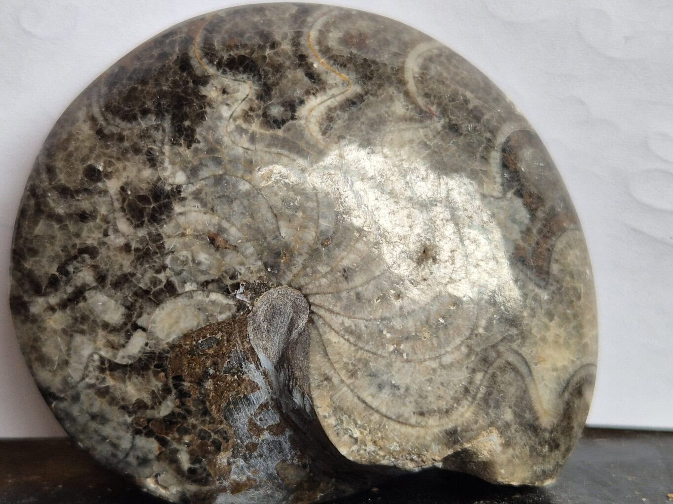 - La Suture Goniatitique (Caractéristique Clé) : C’est le critère de classification le plus important. La ligne de suture (le bord d’attache de la cloison au mur interne de la coquille) est caractérisée par un motif simple et anguleux, composé de selles (parties arrondies pointant vers l’avant) et de lobes (parties pointues pointant vers l’arrière). Ce motif est très peu découpé, contrairement aux sutures des Cératites (Trias) et des Ammonites (Jurassique/Crétacé) qui sont de plus en plus complexes.