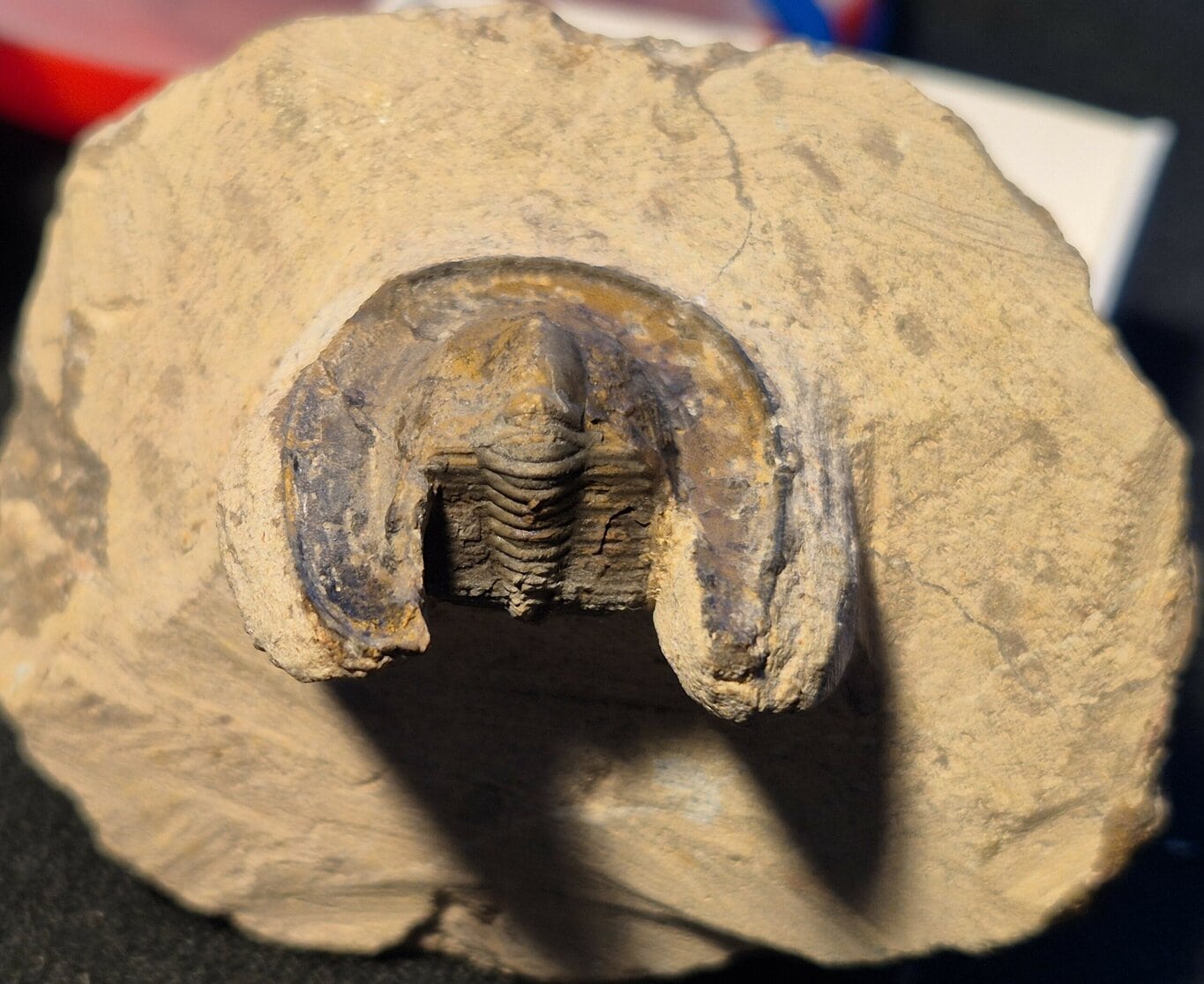 - Le large céphalon et le bord plat auraient aidé le trilobite à s’ancrer ou à se camoufler sur un fond marin meuble ou boueux.