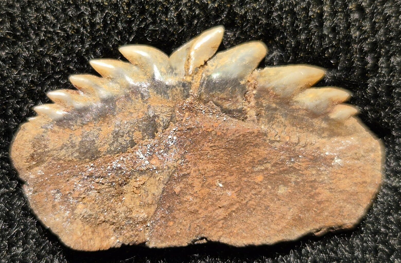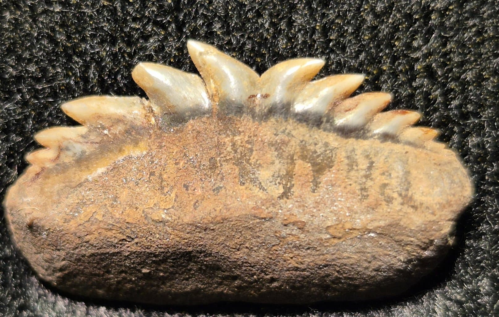 Les dents fossiles d’Hexanchus sont communes et faciles à identifier grâce à cette morphologie en peigne, remontant loin dans le temps, prouvant la stabilité de ce plan corporel.