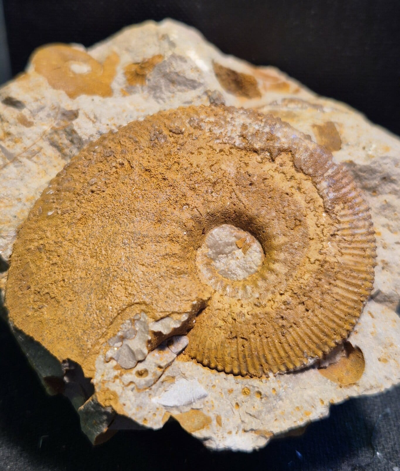 Kosmoceras Trézé est un genre d’ammonite, un mollusque céphalopode marin fossile, caractéristique de la période du Callovien supérieur, un étage géologique du Jurassique moyen, datant d’environ 166 à 163 millions d’années. Ces créatures marines, dotées de coquilles enroulées en spirale, étaient particulièrement abondantes et diversifiées à cette époque. Les ammonites sont souvent utilisées comme des fossiles-index, car leur évolution rapide permet de dater avec précision les couches géologiques.