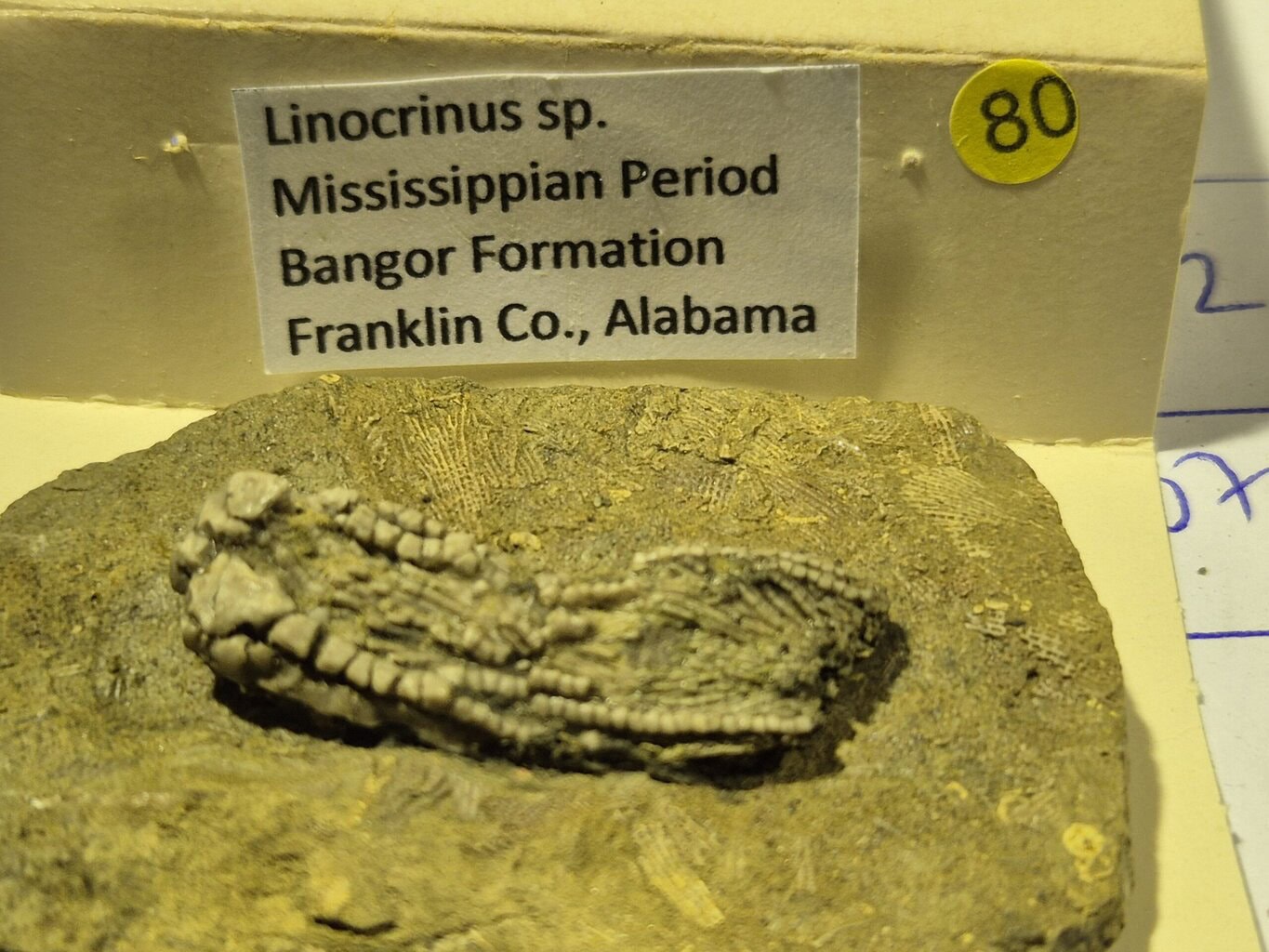 Linocrinus. Souvent appelés “lys de mer”, ce sont des échinodermes marins fixés au fond par un pédoncule. Etage Mississipien, Franklin, Alabama.