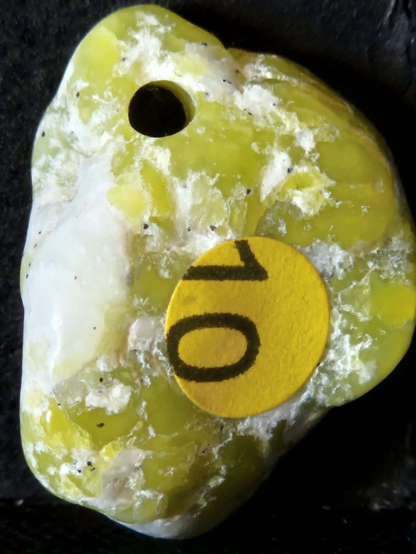 Lizardite Norvège percée frontale. Pierre roulée en véritable Lizardite de Norvège, appelé aussi Serpentine. Percé et monté bélière métal. 2.5cm x 2 cm. 5mm d’épaisseur.