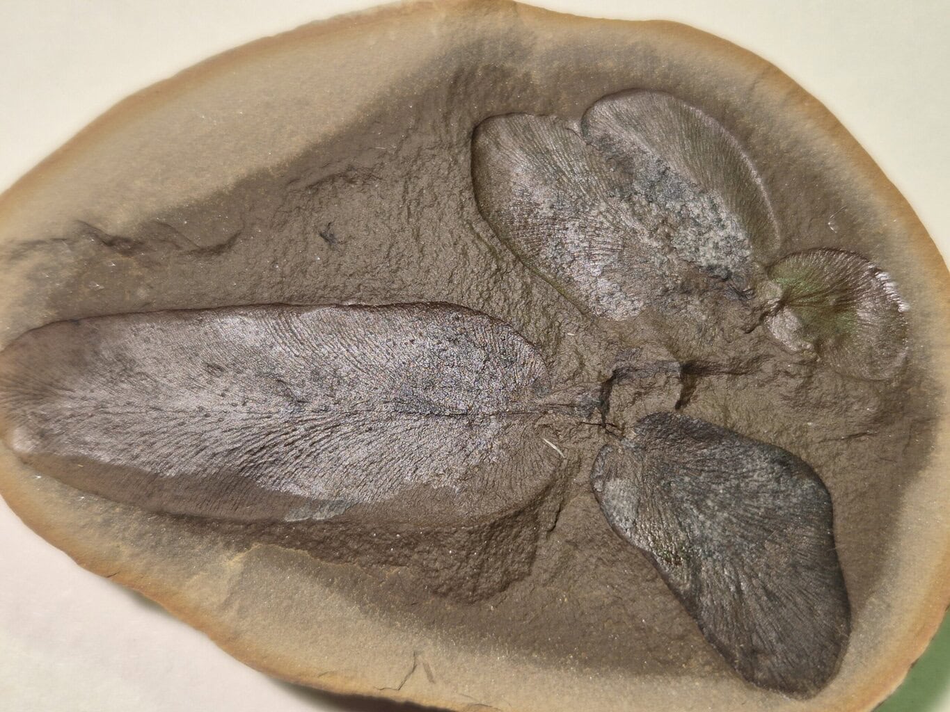 En raison du mode de formation des fossiles, les fossiles sont principalement des impressions ou des incrustations d’organismes. Une impression se forme lorsque, par exemple, une partie de la plante tombe dans l’eau et que les espaces aériens de la plante se remplissent progressivement d’eau. L’organisme se gorge ainsi d’eau et coule au fond où il est enfoui par les sédiments. Le sédiment durcit alors autour de l’organisme, formant un nodule. L’organisme peut alors pourrir, laissant une empreinte de lui-même dans les sédiments qui se sont durcis autour de lui. Cette cavité peut ensuite être remplie de charbon, de calcite, de sidérite ou de toute autre forme de sédiment. Le nodule dans lequel le fossile est conservé peut être fendu proprement en deux avec un marteau, exposant ainsi le fossile qui forme un plan de faiblesse naturel dans le nodule.