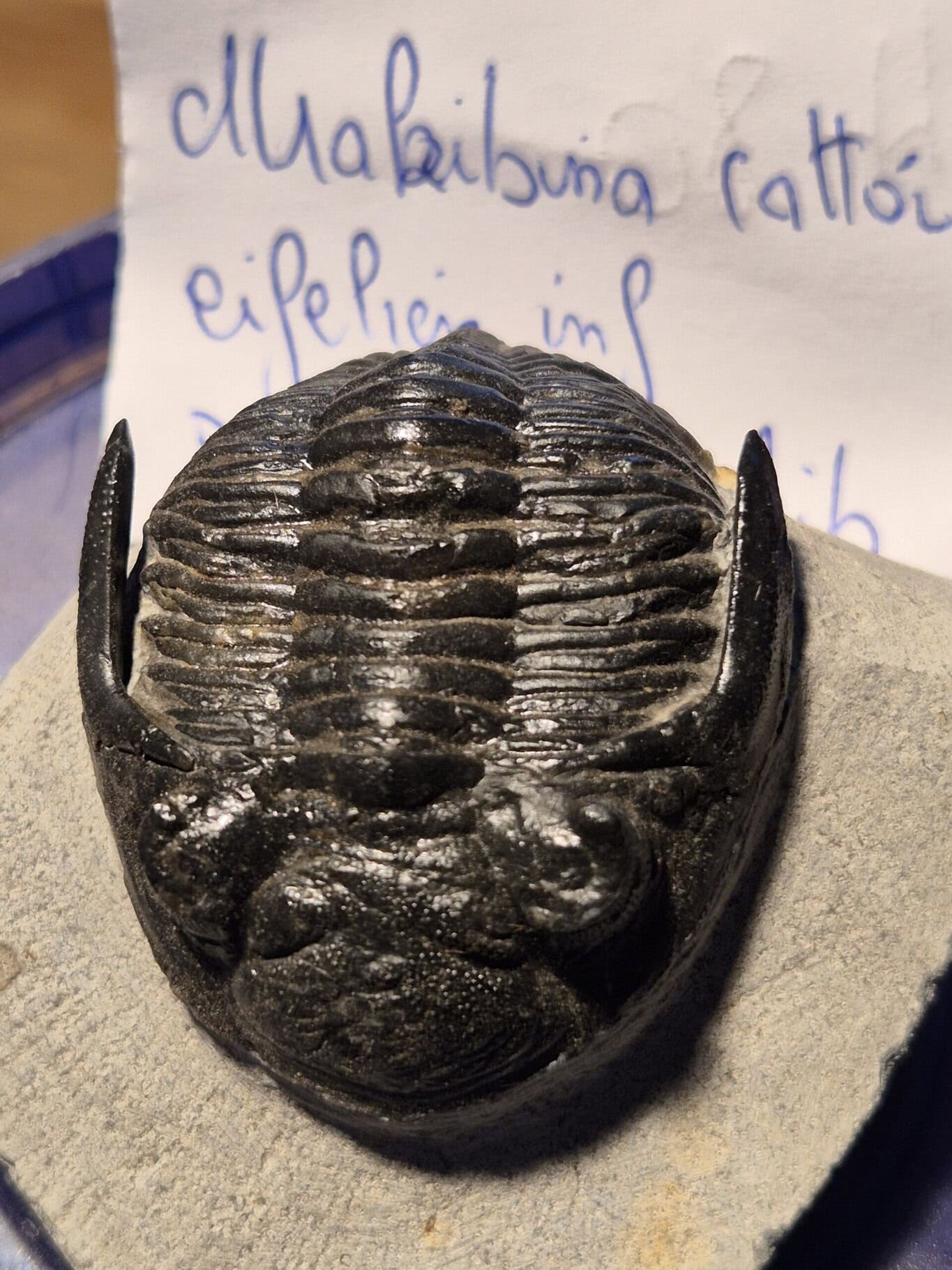 Les fossiles de Hollardops sont particulièrement recherchés par les collectionneurs et les paléontologues. Ils sont souvent retrouvés dans des roches sédimentaires marines. Le Maroc est un site particulièrement riche en fossiles de Hollardops, notamment l’espèce Hollardops mesacristata.Période dévonien,d e – 416 à – 359 millions dannées. Origine: Atchana, Anti-Atlas,Maroc.