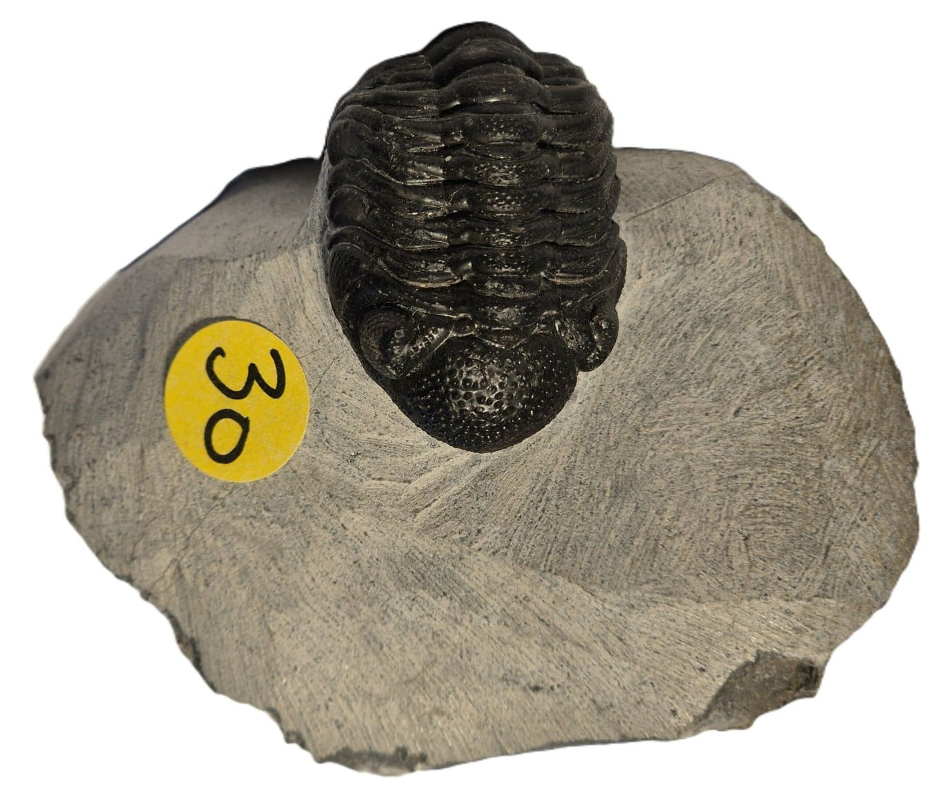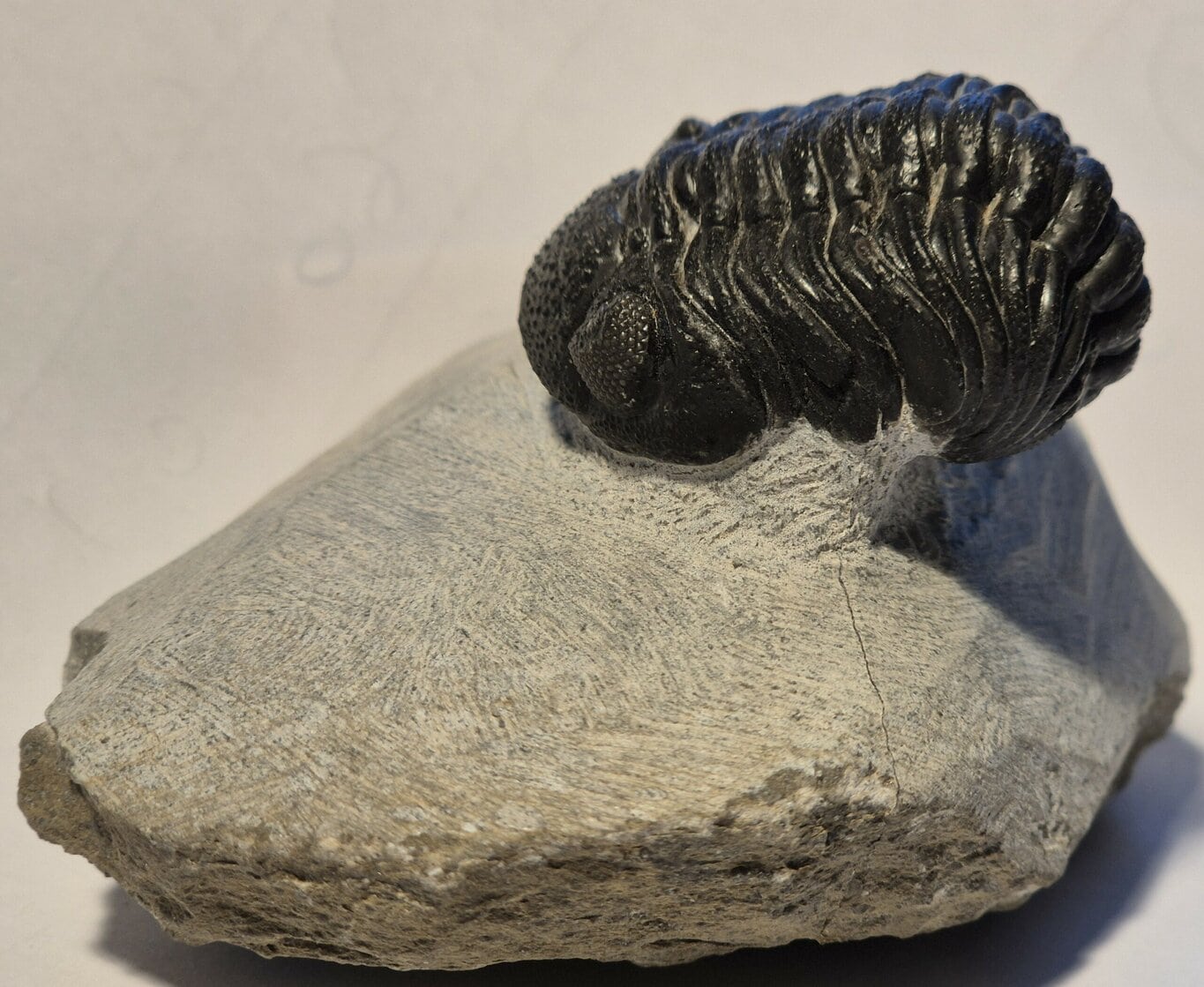 Phacops rana enroulé. Les trilobites Phacops font partie des espèces emblématiques que l’on trouve au Maroc. Ce genre appartient à la famille des Phacopidae. Il est bien connu pour ses caractéristiques comme ses grands yeux composés et son apparence robuste. Les spécimens fossilisés de Phacops sont particulièrement prisés par les collectionneurs, notamment ceux provenant des riches gisements du Dévonien au Maroc.