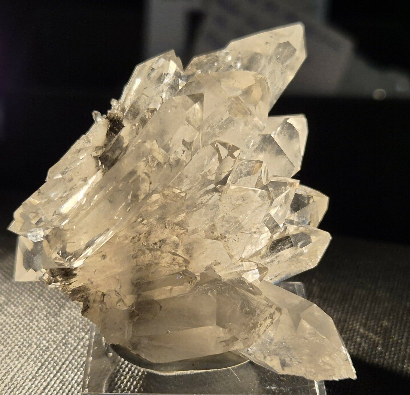 La formation commence par une petite fissure dans la roche. Le Quartz commence à cristalliser sur les deux parois opposées. Sous l’effet des contraintes tectoniques (mouvements des Alpes), la fissure s’ouvre lentement. Les cristaux de Quartz sont rompus. Les fluides hydrothermaux continuent d’alimenter la croissance du Quartz. Le long de la ligne de fracture, le Quartz cristallise de manière très rapide pour combler le vide, formant une cordelette blanche opaque (le Faden) qui relie les deux moitiés du cristal. Finalement, le cristal de Quartz continue de croître autour de cette cordelette, l’incluant complètement.Le Faden : La “cordelette” est une ligne blanche, opaque et fibreuse, qui traverse le cristal de Quartz de part en part. Le Quartz Faden se présente souvent en plaques ou en clusters de cristaux tabulaires, étirés, connectés par ces fils. La forme tabulaire est également très caractéristique des Belleville. Le Quartz lui-même est généralement clair, transparent, ou légèrement laiteux.
