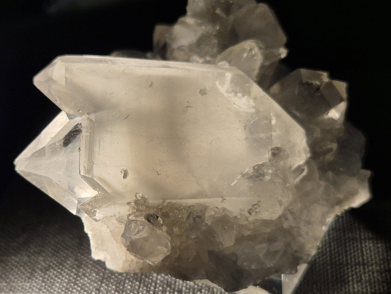 La formation commence par une petite fissure dans la roche. Le Quartz commence à cristalliser sur les deux parois opposées. Sous l’effet des contraintes tectoniques (mouvements des Alpes), la fissure s’ouvre lentement. Les cristaux de Quartz sont rompus. Les fluides hydrothermaux continuent d’alimenter la croissance du Quartz. Le long de la ligne de fracture, le Quartz cristallise de manière très rapide pour combler le vide, formant une cordelette blanche opaque (le Faden) qui relie les deux moitiés du cristal. Finalement, le cristal de Quartz continue de croître autour de cette cordelette, l’incluant complètement.Le Faden : La “cordelette” est une ligne blanche, opaque et fibreuse, qui traverse le cristal de Quartz de part en part. Le Quartz Faden se présente souvent en plaques ou en clusters de cristaux tabulaires, étirés, connectés par ces fils. La forme tabulaire est également très caractéristique des Belleville. Le Quartz lui-même est généralement clair, transparent, ou légèrement laiteux.