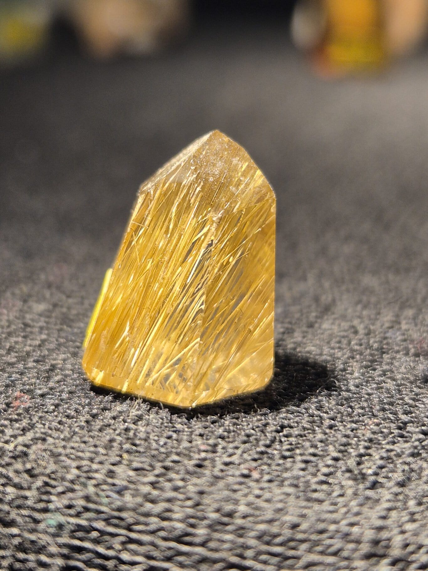 Quartz rutilé miniature. Le Quartz à inclusions de Rutile est l’un des spécimens minéralogiques les plus populaires et les plus spectaculaires au monde. Il est souvent appelé “Cheveux de Vénus” en raison de l’aspect doré de ses inclusions fibreuses.
