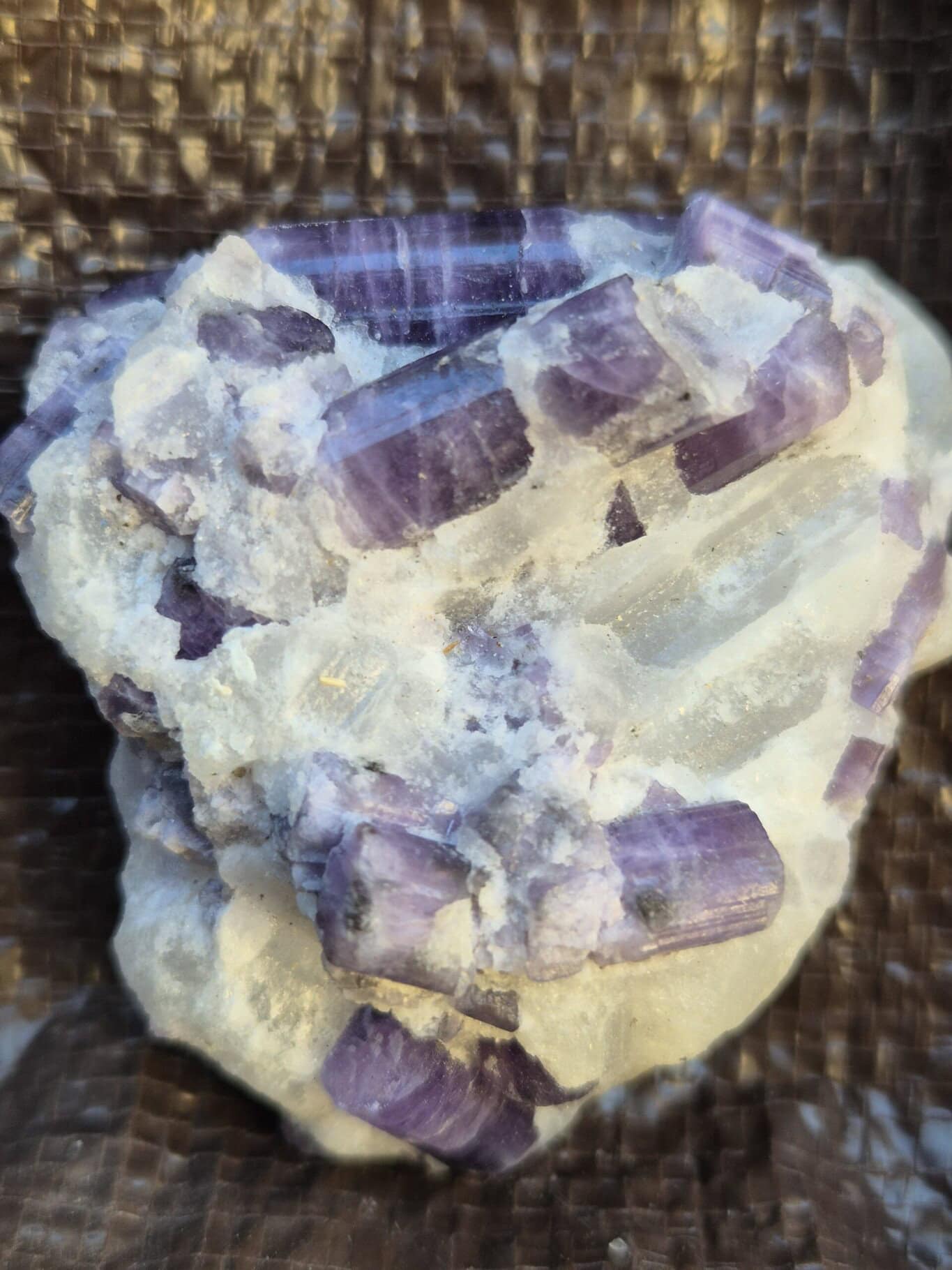 Scapolite bleue Afghanistan. Elle fait partie d’un groupe de minéraux silicatés moins connu que le quartz, mais tout aussi intéressant. Le terme vient (du grec skapos, signifiant tige ou bâton, en référence à la forme de ses cristaux) fait en réalité référence à une série de solutions solides entre deux minéraux principaux : la Marialite et la Meionite.